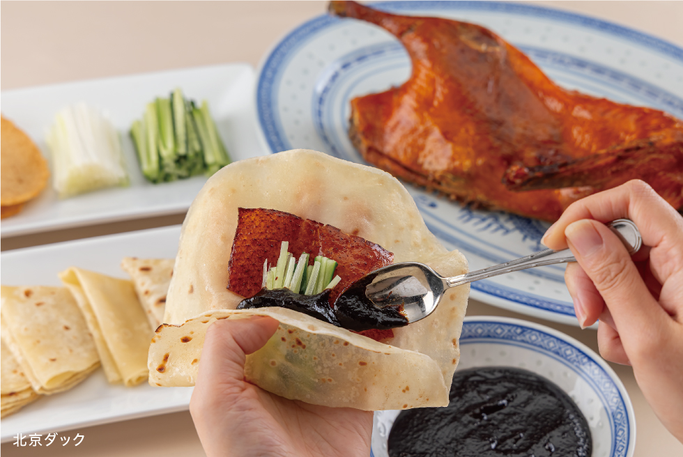 初となるオーダーバイキングは、コース仕立てで始まる特別なスタイル。まずは前菜、旨味が凝縮したふかひれスープ、そして香ばしく焼き上げた北京ダックを、皆さま共通でご提供いたします。その後は、人気メニューを中心とした約50種類の料理から、お好みでオーダー。ご注文ごとに仕上げ、出来たてをお席へお届けします。また、点心は実演で“蒸したて”をご用意。円卓を囲みながら、ゆっくりそれぞれの「食べたい」を一度にお楽しみいただけます。心満たされるひとときをご堪能ください。